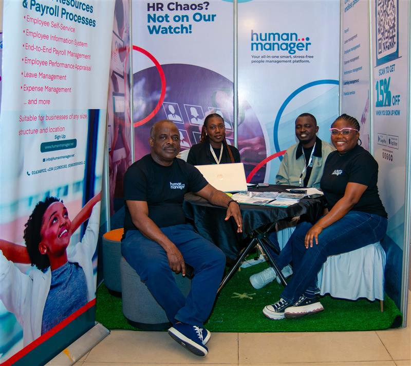 HumanManager MD, Mr Udo Ngele, and team members at the ICTEL – LCCI 2025 event in Lagos